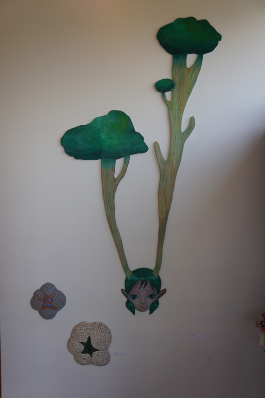 いくつもの作品とグッズの展示と販売。
